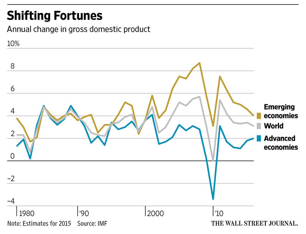 Los nubarrones son múltiples. Estados Unidos no acaba de arrancar (pese a que la Reserva Federal haya querido mejorar el ánimo con la subida de tipos). La zona euro se ha beneficiado de la depreciación del euro, pero ha aumentado la presión deflacionaria mundial. Los únicos países que realmente tiran de la demanda en Europa son España y Reino Unido, por eso crecen más que otros. China está incubando un posible huracán que asusta a muchos y hace que el dinero salga del país en tromba, aunque todo se puede quedar en un gran temporal. Mientras tanto, y hasta que no se resuelva la incógnita china, el boom de las commodities y el petróleo ha llegado a su fin, lo que ha situado a muchos países emergentes –con Rusia y Brasil a la cabeza– más cerca del precipicio, sobre todo porque bastantes de ellos están altamente endeudados en un dólar cada vez más fuerte.