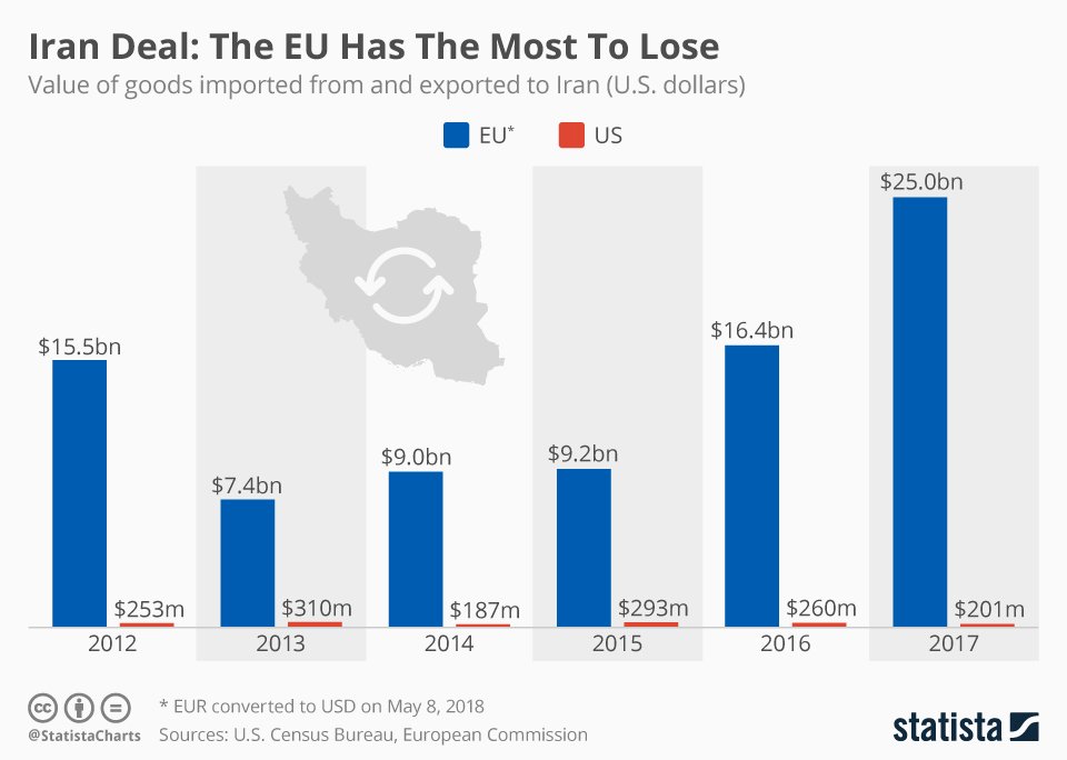 Pese al desarrollo de los acontecimientos y la presión generada, Mogherini no ha cambiado de opinión: “El acuerdo es crucial para la seguridad de la región, de Europa y del mundo entero”. No hay que olvidar que en 2017 la UE exportó a Irán bienes por valor de 11.000 millones de euros y que las importaciones alcanzaron los 10.000 millones. Estas cifras suponen un 0,6% del comercio total de la UE y un 6% del iraní.