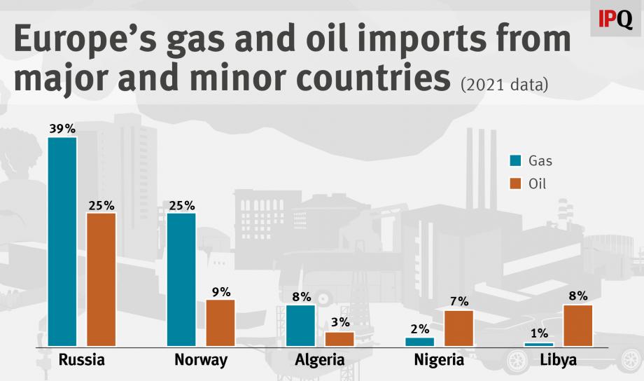 Las importaciones de petróleo y gas africanos no son tan cruciales para Europa como las de Rusia o Noruega, pero son una fuente importante, según los datos de Eurostat. En 2021 la UE importó el 8% de su petróleo de Libia, el 7% de Nigeria y otro 3% de Argelia. Como el mercado del petróleo es mundial, la producción africana es relevante para la UE aunque Europa no importe el petróleo directamente. En cuanto al gas natural, las cifras fueron del 12% de Argelia, el 3% de Nigeria y el 1% de Libia.