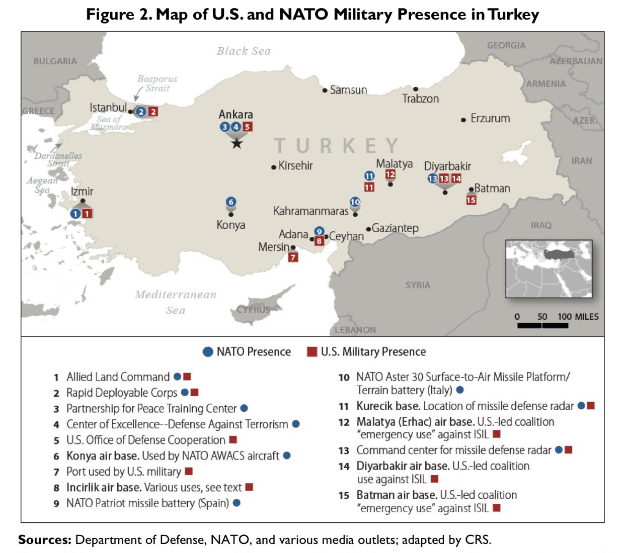 Construida en 1955 como base principal de la OTAN con ayuda de Estados Unidos, desde 2014 Incirlik juega un papel fundamental en la lucha contra el Estado Islámico en Siria e Irak. Después de Turquía, EEUU es con 1.500 militares el país con más soldados estacionados en la base. En segundo lugar está Reino Unido. Alemania tiene a 280 soldados, entre pilotos y personal militar diverso, en tareas de apoyo aéreo. Hay, asimismo, soldados de Holanda, España, Dinamarca… y otros países no miembros de la OTAN como Arabia Saudí y Catar. Subraya el valor de Incirlik la existencia, nunca confirmada por Ankara y Washington, de cabezas nucleares.