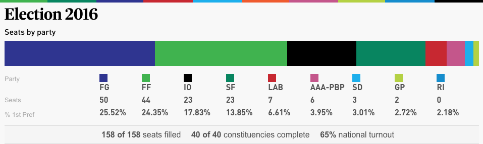MÉRITOS: El Dáil surgido del 26-F parecía, en un primer momento, ingobernable, con todos los partidos lejos de la mayoría absoluta. En un Parlamento de 158 escaños, Fine Gael ha conseguido 50; su gran rival desde la guerra civil, el centrista Fiana Fáil, ha logrado 44; el Sinn Féin de Gerry Adams, erigido en adalid contra la austeridad, 23, y una amalgama de partidos independientes, otros 23. Los laboristas, socios en el gobierno de Kenny en el último lustro, han pasado de 37 escaños a siete, por lo que la coalición no se podría reeditar. El ex primer ministro del Fiana Fáil, Bertie Ahem, hablaba de un “juego nuevo, no hay ninguna combinación lógica que pueda arreglar esto”.