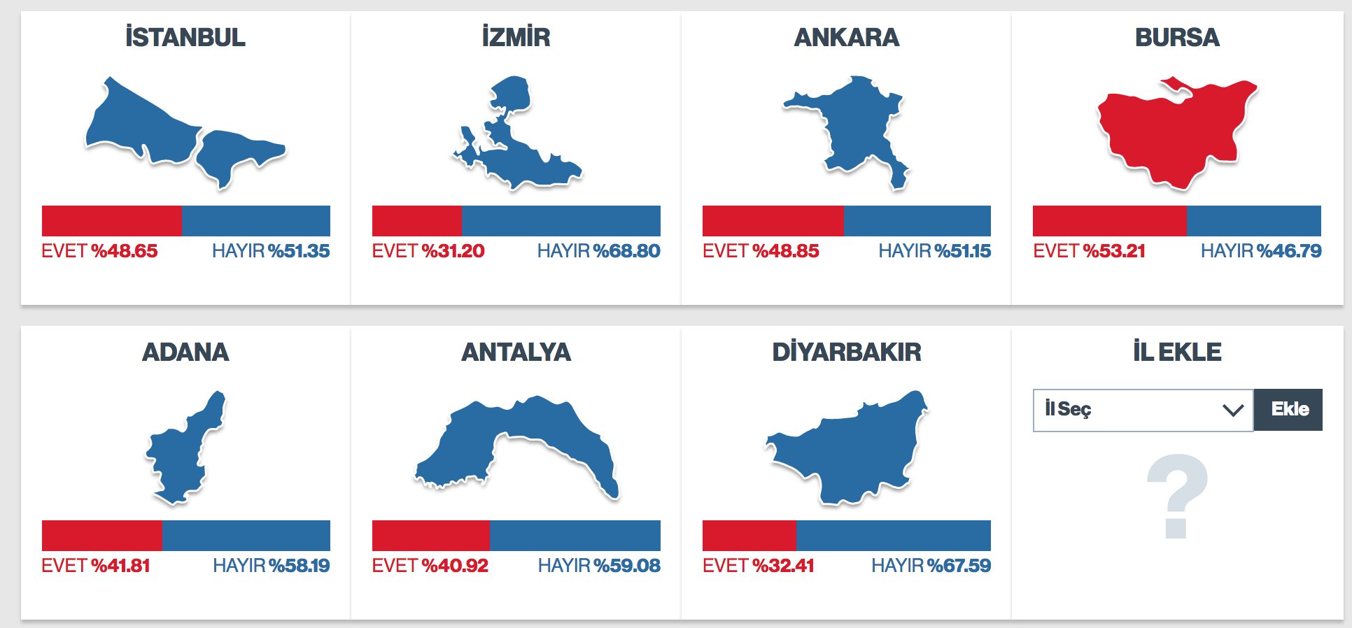En Turquía, si bien la anulación del referéndum planteada por el CHP y la revisión de un importante porcentaje de los resultados que solicita el HDP podrían ser finalmente desestimadas, dejan un poso de ilegitimidad sobre las reformas constitucionales. Aunque Erdogan cuenta con más poder tras la aprobación de las reformas, se ha constatado una pérdida de apoyos: en las tres grandes ciudades turcas, Estambul, Esmirna y Ankara, venció el No.