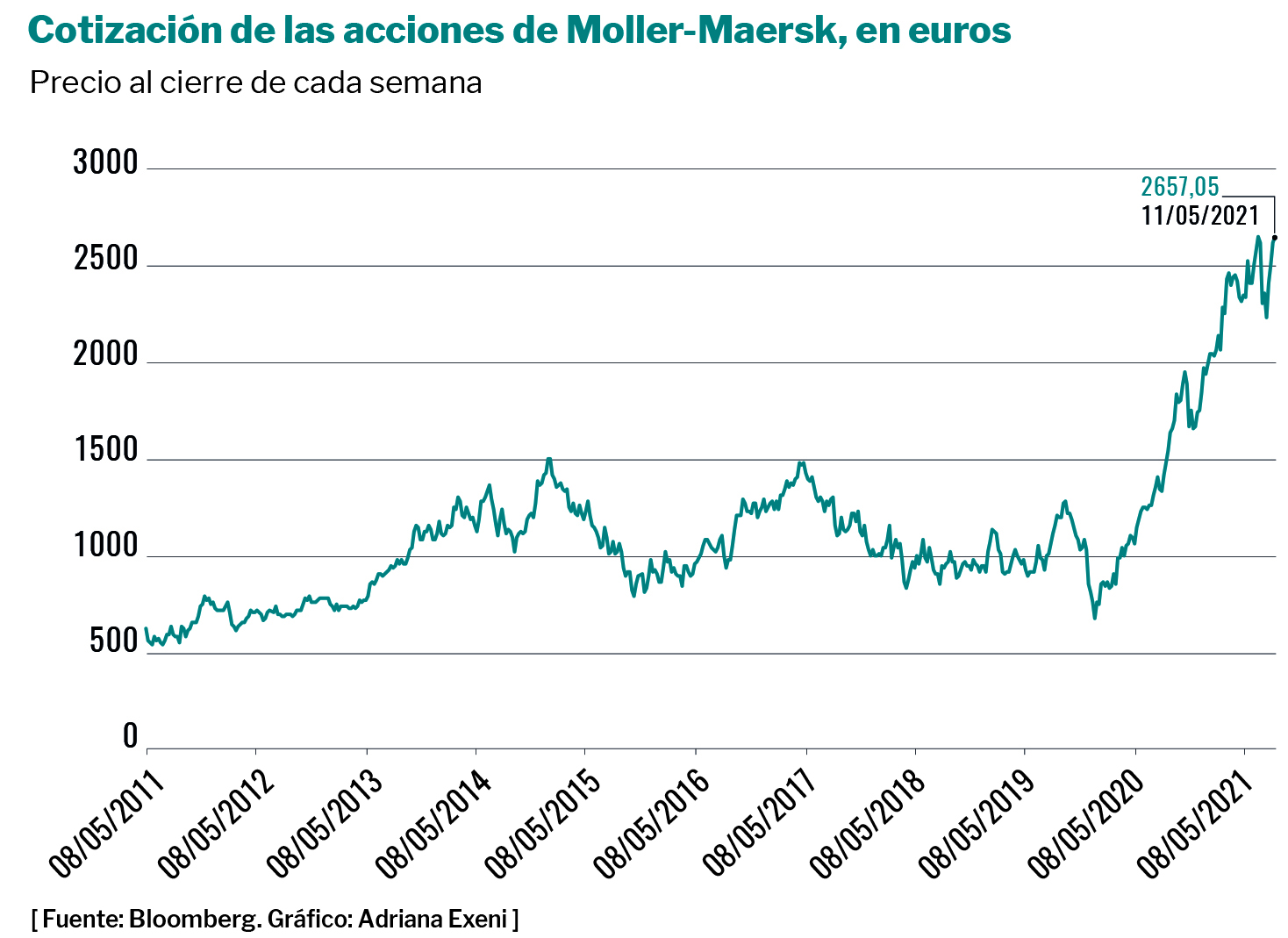 En la escasez, no obstante, también se generan situaciones de abundancia. Es el caso de las grandes navieras de transporte de mercancías, que multiplican sus beneficios gracias a los embotellamientos provocados por la pandemia. El mejor ejemplo es el de la danesa Maersk, la dueña de los mares. Sus beneficios se han multiplicado por ocho este 2021, superando los 10.000 millones de euros entre enero y septiembre.