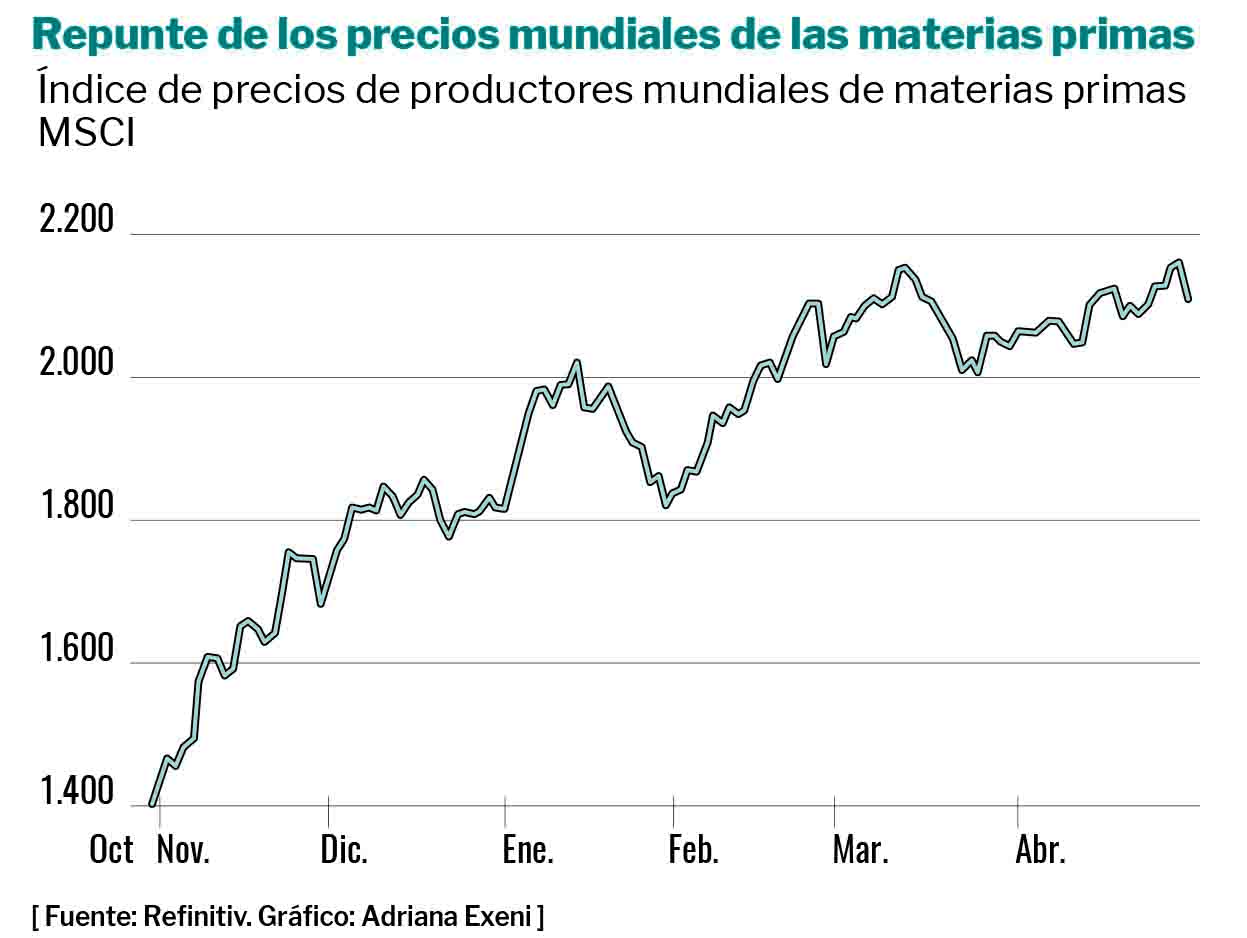 El alza de los precios en los mercados mundiales de las materias primas –litio, cobre, aluminio, hierro, paladio, madera, soja– se debe a varios factores. Entre ellos destaca la voraz demanda de China, el billonario gasto en infraestructuras aprobado, propuesto por Joe Biden en Estados Unidos, y las revoluciones verde y digital, que han creado expectativas de un nuevo “superciclo”, quizá similar al de la primera década de este siglo y que puede ofrecer una nueva oportunidad a las economías emergentes en el mundo pospandémico.