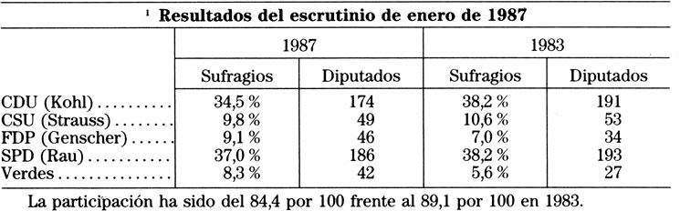 A la izquierda, el Partido Socialdemócrata SPD de Willy Brandt, conducido a la pugna por Johannes Rau, ha cedido terreno a los Verdes. Contrariamente a las predicciones hechas para asegurarnos, los socialistas no han absorbido a los Verdes en el transcurso de los diez últimos anos. Son los Verdes quienes están royendo al SPD.