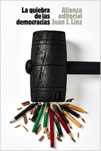 La reedición de La quiebra de las democracias (Alianza Editorial) no puede ser más pertinente. Primero, por el claro proceso de contra-ola democrática que estamos viviendo desde la primera década del siglo XXI. Normal que esto haya acrecentado el interés de periodistas y académicos en la materia, algo palpable en el creciente número de publicaciones al respecto, y que apunta muy bien la muerte del “optimismo democrático” tras la Guerra Fría. Pero, además, el libro tiene valor no solo por rescatar el pensamiento de Linz, el politólogo más influyente que ha dado jamás nuestro país, sino también porque demuestra hasta qué punto se trata de un clásico. Sus reflexiones e intuiciones intelectuales tienen plena vigencia para iluminar debates contemporáneos como el que nos ocupa.