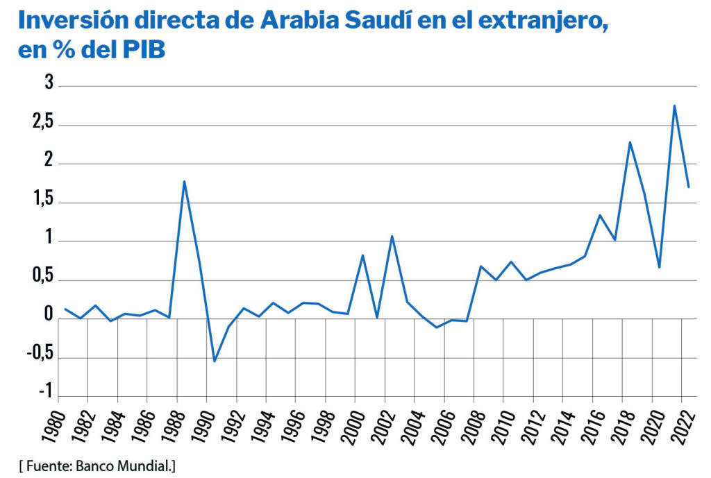 Arabia Saudí logró en 2022 el primer superávit fiscal en casi una década de cerca de 28.000 millones de dólares. Los ingresos públicos se dispararon en casi un tercio (un 31%) gracias a la escalada de los precios de la energía. La gran petrolera del país, Aramco, pagó al Estado un dividendo de casi 75.000 millones de dólares, esto es, casi la recaudación anual que se genera en España con el IVA. Esta gran entrada de recursos al país gracias a la invasión de Ucrania ha empujado a Riad a replantear su estrategia económica. Además de impulsar la economía interna y la descarbonización, se ha trazado un ambicioso proyecto de inversiones extranjeras para diversificar sus fuentes de renta.