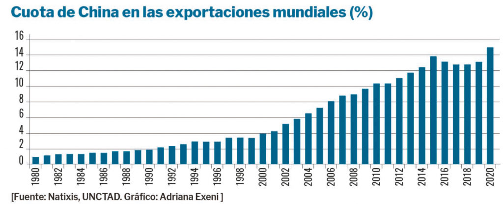 El único gran país que quedó fuera del alcance de China fue Rusia. Hasta entonces, China solo había conseguido atraer a una parte mínima de la industria que se deslocalizaba de los países desarrollados en busca de costes de producción más competitivos. A partir de 2001, el interés por China se multiplicó, a lo que sumó la gran apuesta económica del gobierno chino por fortalecer el tejido productivo orientado a la exportación, con una regulación laboral casi inexistente.