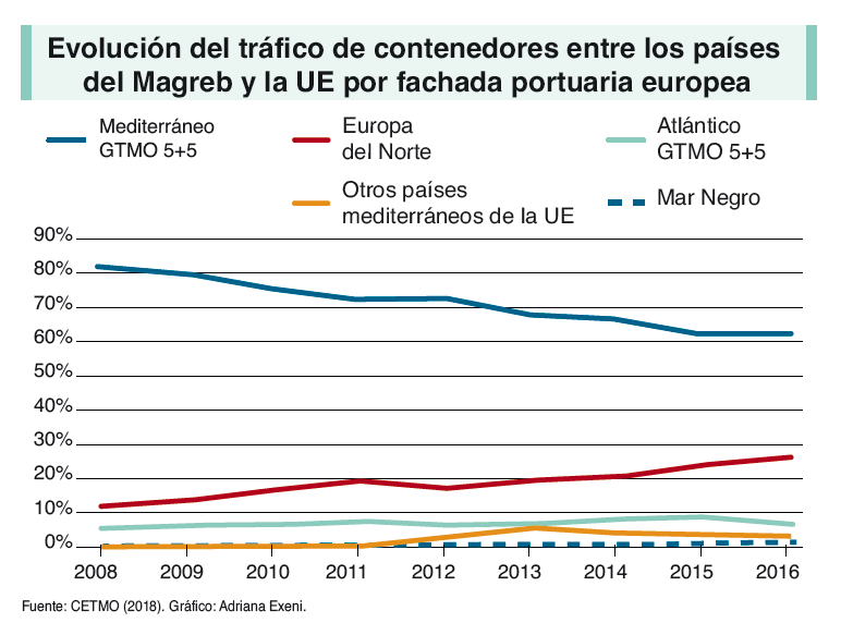 Ya desde los orígenes del comercio en el Mediterráneo el transporte marítimo desempeñó un papel decisivo. Actualmente sigue siendo así: la práctica totalidad de los intercambios comerciales entre ambas orillas del Mediterráneo se llevan a cabo por vía marítima, lo que pone de relieve la gran importancia de los puertos en la dinamización de la actividad económica entre las naciones que configuran la cuenca mediterránea. En el Mediterráneo occidental, objeto de este artículo, las cifras relativas al tráfico de contenedores en sus puertos, comprendiendo un total de 48 autoridades portuarias, se ha más que duplicado en tan solo 15 años: de los 18 millones de contenedores en 2001 se pasó a 41 millones en 2016. Sin embargo, ese gran incremento en el tráfico de contenedores no ha redundado en un incremento similar de…