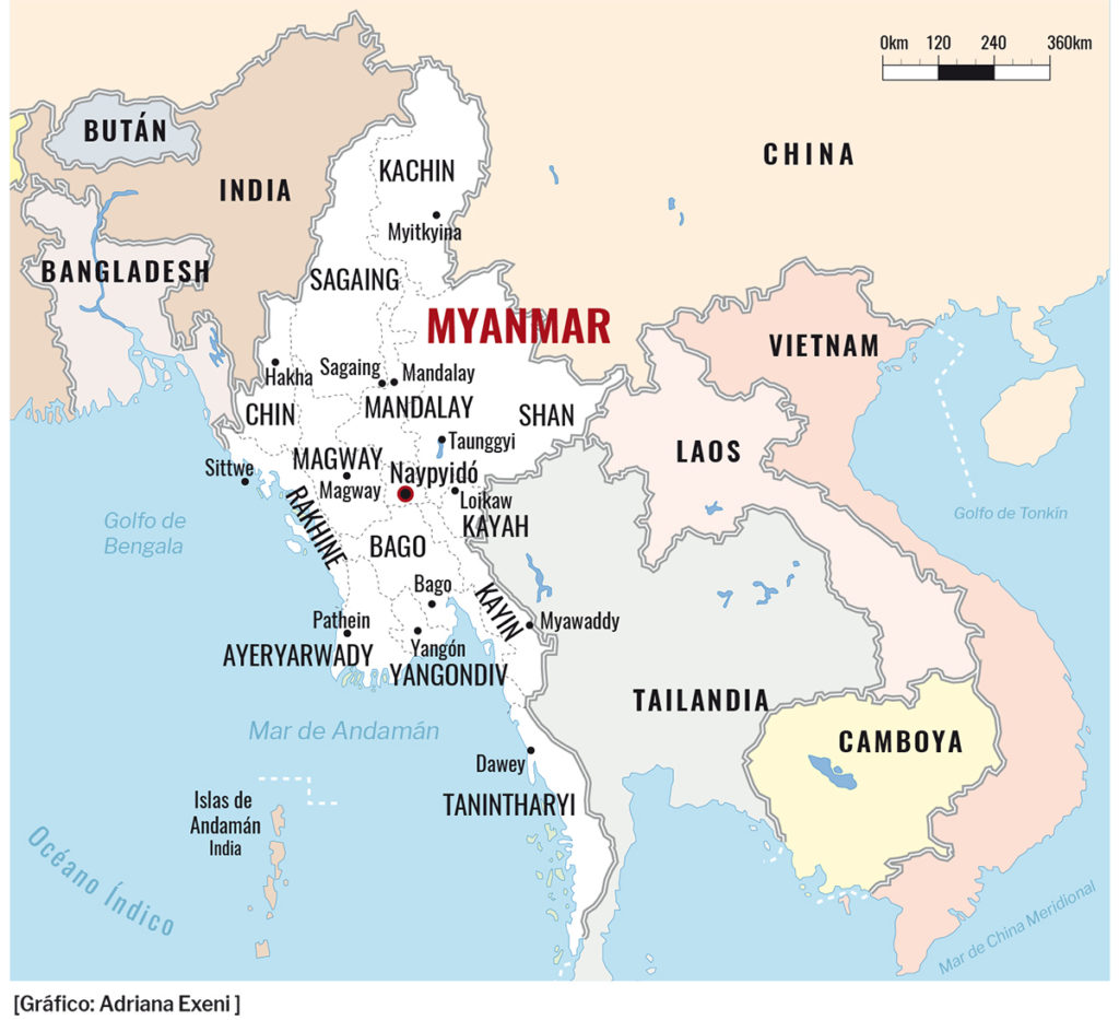 EL 14 de marzo se produjo un atentado con artefactos incendiarios contra fábricas de capital chino situadas en un barrio industrial de Yangón. Este primer brote de violencia frontal contra los intereses económicos chinos en Myanmar se ha vinculado con las manifestaciones contra el golpe de Estado del 1 de febrero. Los ciudadanos están cada vez más irritados por la reticencia de las autoridades chinas a pronunciarse sobre el golpe. Esta irritación se convirtió en ira cuando se confirmaron los indicios de que China estaba suministrando armas al país y había desplegado tropas y especialistas en ciberseguridad para ayudar al Tatmadaw, el ejército birmano, a controlar el acceso a internet y a la información.
