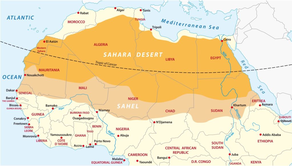 Aunque las periferias del Sahel puedan parecer un lugar remoto, situado en una autopista perdida lejos de las principales rutas de la economía mundial, son zonas extraoficial e ilegalmente bien conectadas con el mundo de la globalización a través de las nuevas oportunidades económicas que ofrece el comercio transahariano. Las viejas rutas comerciales que cruzaban el desierto han recuperado así parte de su antigua importancia. En toda la zona se hace contrabando de cigarrillos, y los cárteles latinoamericanos de la droga han utilizado cada vez más África occidental y el Sahel como un importante punto de tránsito de su tráfico de cocaína a los mercados de Europa del Este y el Oeste. En este tráfico, los países de la costa occidental africana como Ghana, Guinea-Bissau, Mauritania y Senegal, y del Sahel, como Malí y Níger, constituyen importantes territorios de tránsito. Por ejemplo, una concurrida ruta de cocaína opera desde las aguas costeras, a través del Norte de Malí y Kidal. Si logra salir del país con la droga, el conductor puede ganar hasta 3.000 euros por transportar una carga desde Kidal hasta Libia, a través de la frontera con Argelia o Níger.