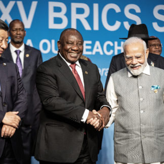 Dos días después de la invasión rusa, la Asamblea General de Naciones Unidas votó una resolución de condena en la que, de los 54 países africanos con derecho de voto, 28 votaron a favor; uno, Eritrea, votó en contra; y 25 se abstuvieron o no votaron. A diferencia del resto de grupos regionales, el africano está claramente dividido en dos bloques. Suráfrica votó entre los abstencionistas, declarándose neutral. Unos meses después permitió a un buque ruso descargar armas y municiones en una base naval surafricana y, en el primer aniversario de la invasión rusa, Suráfrica organizó frente a sus costas ejercicios navales junto a las marinas de guerra de China y Rusia. Invitó a Vladímir Putin a participar en la cumbre de los BRICS (Brasil, Rusia, India, China y Suráfrica) en Johannesburgo en agosto, aunque luego logró, con no poco esfuerzo, que el presidente ruso declinara la invitación.