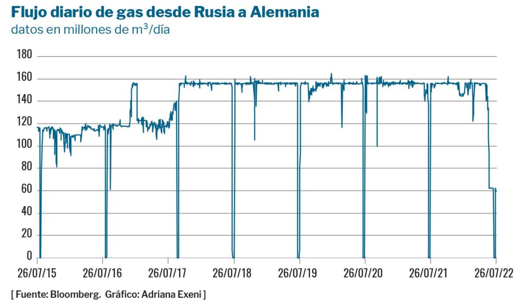 A medida que pasan las semanas, el otoño parece más frío en Europa. Con el verano ya bien entrado, las reservas de gas acumuladas en los tanques de los países comunitarios están todavía lejos de lo que es habitual en estas fechas. Hay alguna excepción, como España, con algo más de tres cuartas partes de su capacidad de almacenamiento completa, pero el conjunto de la Unión Europea tiene apenas un 67%, un 17% menos que a finales de julio de 2019. La situación es peor en Alemania, con un 22% menos de capacidad utilizada.