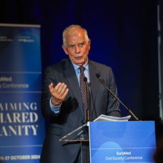 Con este propósito, los pasados 26 y 27 de octubre, el IEMed, con el apoyo del Servicio Europeo de Acción Exterior (SEAE), organizó la Conferencia de la Sociedad Civil Euromediterránea “Recuperando nuestra humanidad compartida. Contrarrestando la Polarización, Deshumanización y Radicalización impulsadas por el conflicto en Oriente Medio”, que reunió a más de 200 participantes de 33 países, principalmente organizaciones de la sociedad civil, pero también responsables políticos y expertos de toda la región.