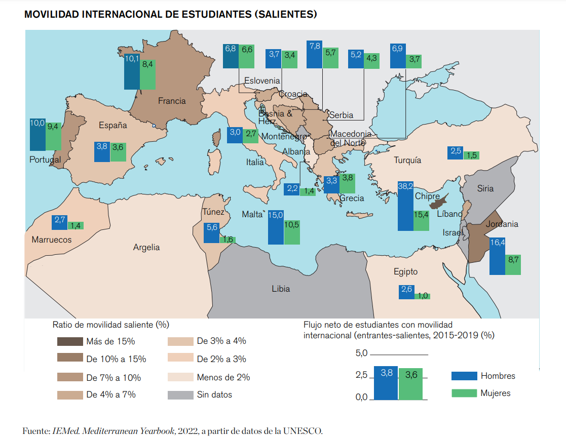 Por lo que se refiere a la dimensión educativa, el informe The Internationalisation of Higher Education in the Mediterranean. Current and Prospective Trends elaborado en 2021 por UNIMED a petición de la Unión por el Mediterráneo, ofrece una visión completa y actual sobre cuáles son los retos y dificultades a los que se enfrentan las universidades de ambas orillas del Mediterráneo en este ámbito. El estudio se centra básicamente en identificar las tendencias actuales sobre la movilidad y los intercambios académicos de estudiantes, profesorado y personal administrativo entre las universidades de la región, pero también pretende identificar los obstáculos y los desafíos existentes, así como las buenas prácticas que han permitido superarlas. Para ello analiza en profundidad la situación de 10 países (Argelia, Egipto, Israel, Jordania, Líbano, Libia, Mauritania, Marruecos, Palestina y Túnez) a partir de encuestas a los distintos colectivos, entrevistas con agentes relevantes y grupos focales que permiten identificar retos compartidos por todos los países de la región y otros de carácter más específico. De manera muy resumida, algunos de los principales factores que se identificaron de forma transversal como barreras a la internacionalización y sobre los que deseo incidir en este artículo son: en primer lugar, las dificultades en el reconocimiento académico y la acreditación institucional; en segundo lugar, las relacionadas con la gestión de la movilidad; y, en tercer lugar, la necesidad de superar distintas dificultades estructurales tanto internas como externas.