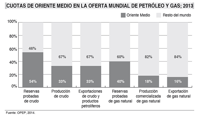 Estamos inmersos en una coyuntura marcada por importantes cambios geoestratégicos que redefinen el mapa energético mundial y de Oriente Próximo. Como jugador destacado en el tablero internacional ha empezado a mover ficha a través del impulso de las energías renovables. Desde el punto de vista de la oferta, hay que destacar, sin duda, el desarrollo del fracking en Estados Unidos, con importantes consecuencias en los precios internacionales (existe ya un considerable gap entre los precios del gas en EE UU, Europa y Japón) y en el papel de la potencia americana en los flujos comerciales de energía: EE UU podría pasar de ser importador neto a exportador de gas en 2020 y su producción de petróleo se incrementa de forma significativa.