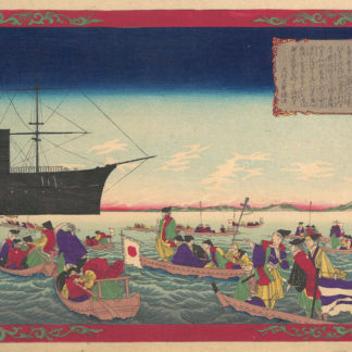 En 1547, llegan los primeros europeos a las costas japonesas. Primero los portugueses, que introducen las armas de fuego, después los españoles, y finalmente los holandeses. Muy pronto estos últimos substituyen a los primeros. Viendo despuntar el peligro, Japón se cierra en sí mismo. En 1641, el aislamiento es oficial, y durará tres siglos. Las relaciones con el mundo exterior se reducen a contactos con China y Holanda a través de la isla Deshima, en la bahía de Nagasaki. Los shoguns crearon un cuerpo de samurais para aprender el holandés, y gracias a esta isla, los descubrimientos europeos, las ciencias de la naturaleza, la metalurgia, y la que se denominará “Rangaku”, ciencia holandesa, se conocerán en Japón a lo largo de estos tres siglos de aislamiento. Japón no permaneció completamente apartado, como se ha pensado. Cuando los barcos negros del almirante Perry amenazaron el archipiélago en 1853, Japón estaba preparado para la apertura. Durante la Restauración Meiji (1868), Japón iniciará con naturalidad el camino de la modernización.