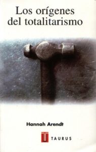 Los orígenes del totalitarismo es un libro escrito en el exilio y compuesto de tres partes, que en ocasiones anteriores se habían publicado en castellano en volúmenes independientes: Antisemitismo, Imperialismo y Totalitarismo. La separación en tres partes corresponde al intento de separar todo lo posible elementos y orígenes, causas y consecuencias del fenómeno que Hannah Arendt se propone estudiar. El núcleo central del ensayo es el concepto específico de «totalitarismo», aquel que nos acerca a la «banalización del mal». A pesar de lo confuso, «totalitaria» es toda aquella política que se muestre capaz de despertar activamente en los seres humanos el lado siniestro, la manera eficaz de conseguir al fin una completa extensión social del «mal, hasta hacerlo sujeto de pautas de conducta común y colectiva, de ansias de exterminio impuestas y aceptadas merced a la violencia y desnaturalización de la condición humana». Puedes leer la reseña completa aquí.