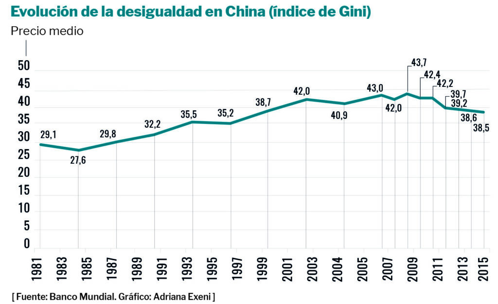 Lo que China prometía al solicitar su entrada en la OMC no se ha cumplido por ahora: el gran crecimiento de las clases medias del país, que supondría un fuerte aumento de la demanda interna y de las importaciones procedentes del resto del mundo. La esperanza de una burguesía de más de 1.000 millones de habitantes fue suficiente para despertar la codicia de Occidente y aceptar la entrada de China en la Organización. En 2001, la República Popular tenía una economía intervenida, grandes restricciones de libertad y unas condiciones laborales draconianas. Dos décadas después, China sigue en el mismo punto, compitiendo en precios bajos y sin una clase media pujante. De hecho, la desigualdad se ha incrementado en estos 20 años, con unas élites económicas cada vez más alejadas del resto de la población. A pesar de ser una dictadura comunista, se trata de uno de los países con mayor desigualdad del mundo, lo que ha impedido el crecimiento de la demanda interna.