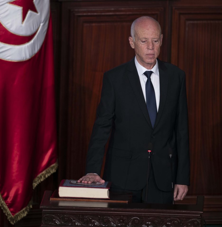 El presidente electo de Túnez, Kais Said, presta juramento en la Asamblea de Representantes del Pueblo en Túnez. Túnez, 23 de octubre de 2019./Yassine Gaidi/Agence Anadolu via Getty Images