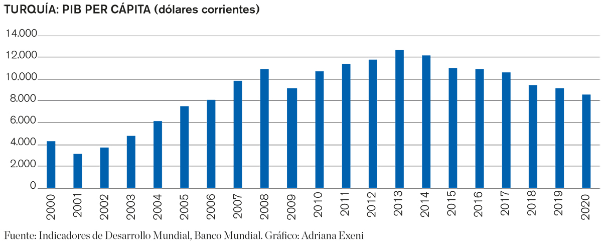 El AKP soslayó sus orígenes islamistas al llegar al poder y se definió como un partido demócrata-conservador que, potenciando la estela del gobierno tripartito precedente, logró en 2005 la apertura de las negociaciones para la adhesión de Turquía a la Unión Europea. Fueron años de notable crecimiento económico y un activo papel en la esfera internacional,…