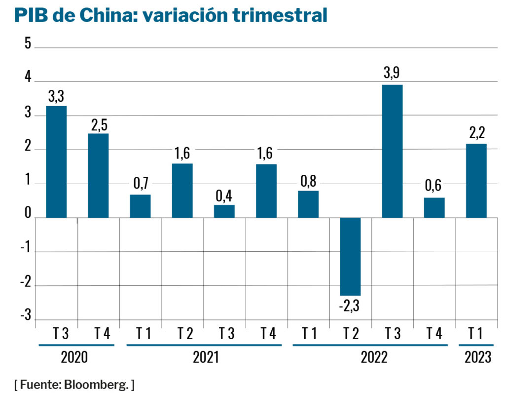 China sorprendió semanas atrás con la publicación del PIB del primer trimestre de 2023. Su economía creció un 2,2% respecto al último trimestre de 2022, dos décimas por encima de las expectativas. En tasa interanual el crecimiento ascendió al 4,5%, lo que acerca el país al objetivo del crecimiento anual del 5% fijado por su gobierno. Este rebote económico fue consecuencia del final de la política de Covid cero impulsada por Pekín durante la pandemia para frenar los contagios. La recuperación de la movilidad impulsó la actividad, en especial la demanda interna, lastrada como consecuencia de los continuos confinamientos decretados por las autoridades.