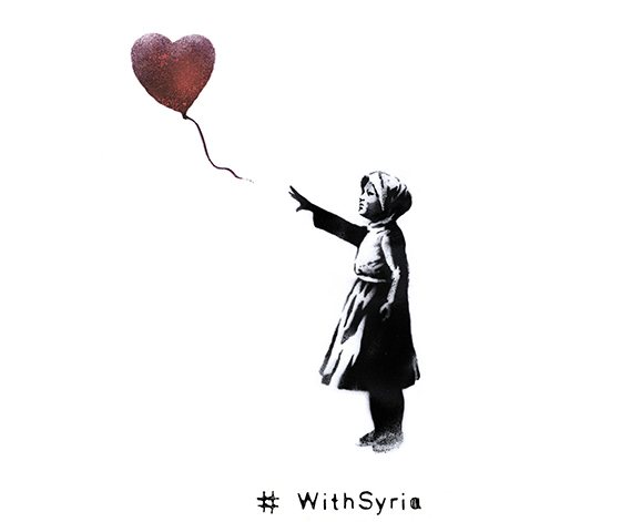Banksy también ha tratado de denunciar lo que sucede en Siria desde hace más de cuatro años. A través de la campaña WithSyria.com lanzada en 2014, el artista británico transformó una de sus obras más conocidas en Londres (una niña con un globo en forma de corazón, realizada en 2002) para transformarla en un homenaje a las víctivas de la guerra civil siria.