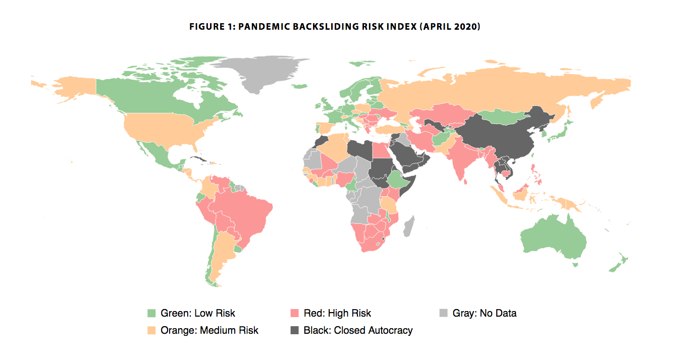 Dicho esto, no es casual que el índice de riesgo de retroceso democrático a causa de la pandemia, elaborado por el V-Dem Institute, coloque a Bolivia, junto a Brasil, Paraguay y Venezuela, entre los países con alto riesgo de un debilitamiento de su democracia a causa de las medidas adoptadas contra el Covid-19.