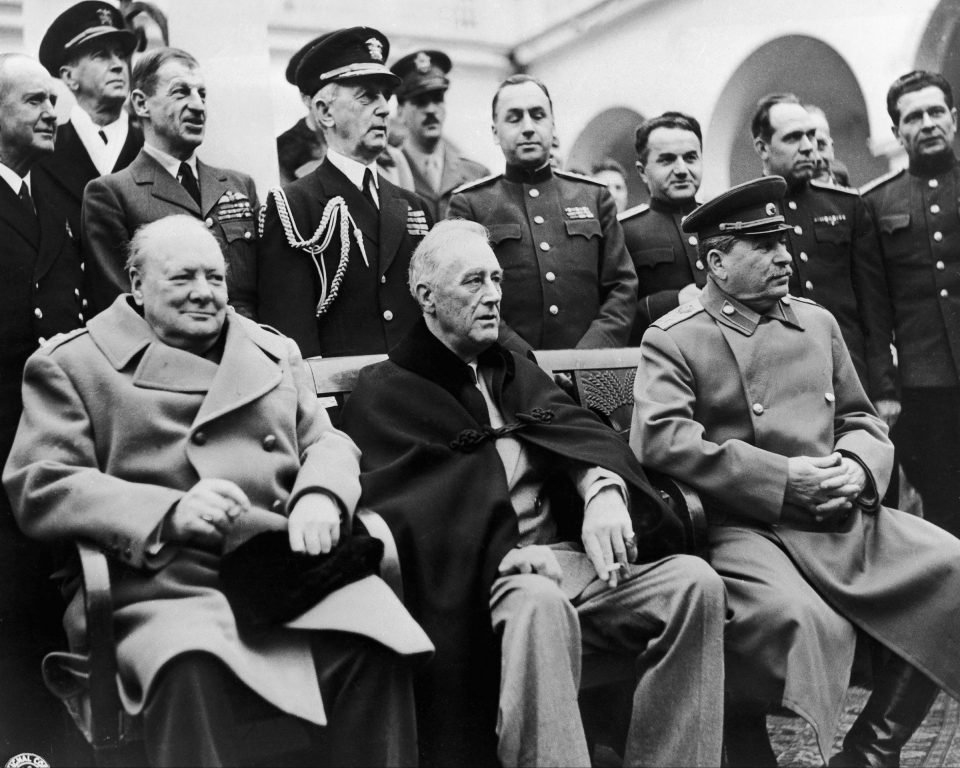 Durante las tres conferencias más celebres de la Segunda Guerra Mundial, celebradas en Teherán (1943), Yalta y Potsdam (las dos en 1945), Rusia, Reino Unido y Estados Unidos se reunieron en calidad de aliados. A las dos primeras asistieron Stalin, Roosevelt y Churchill con el fin de establecer el desarrollo de la guerra y las condiciones de paz tras la derrota del nazismo. Una de las interpretaciones más comunes sobre el origen de la Guerra Fría enfatiza la buena relación entre el presidente estadounidense y el dictador soviético, que se quebraría tras el fallecimiento de Roosevelt en abril de 1945 (dos meses después de Yalta). A Potsdam, en las afueras de un Berlín recién liberado por el Ejército Rojo, acudiría Harry Truman por parte de EEUU y el laborista Clement Attlee, que sustituiría a Churchill como primer ministro británico. Con la ocupación soviética del este de Europa y el desarrollo de la bomba atómica (Hiroshima era bombardeada cuatro días después del encuentro), comenzaban a trazarse las trincheras que enfrentarían a EEUU y la URSS durante las siguientes cuatro décadas.