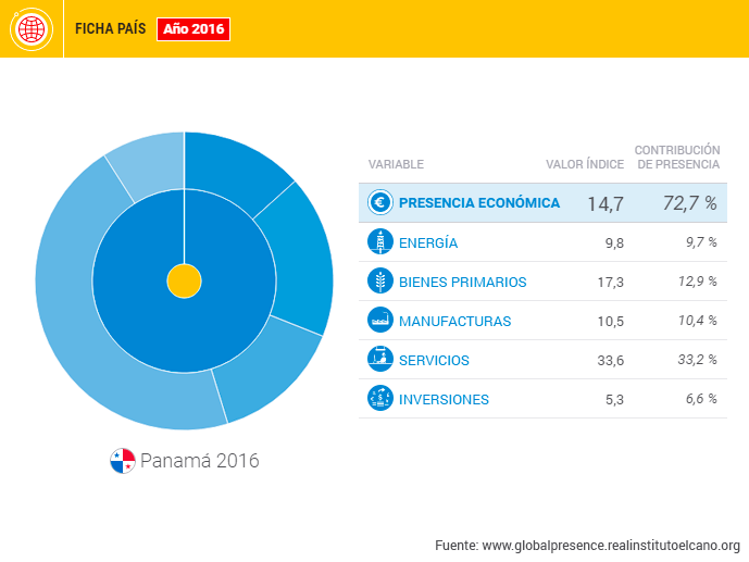 En definitiva, la evolución de la presencia de Panamá en el mundo ha estado, y continúa estando, estrechamente ligada a la actividad económica del canal, a lo que se añade su rol financiero y cierto dinamismo en algunos indicadores de presencia blanda. Todo ello le ha permitido un constante, aunque pequeño, incremento de cuota de presencia en el mundo. La reciente ampliación del canal permitirá el tránsito de buques de mayor tamaño, cada vez más habituales en el comercio internacional, esperando un incremento del tránsito de mercancías por el mismo. Por ello, es previsible que, en los próximos años, se mantenga el fortalecimiento de su perfil tradicional de proyección exterior.