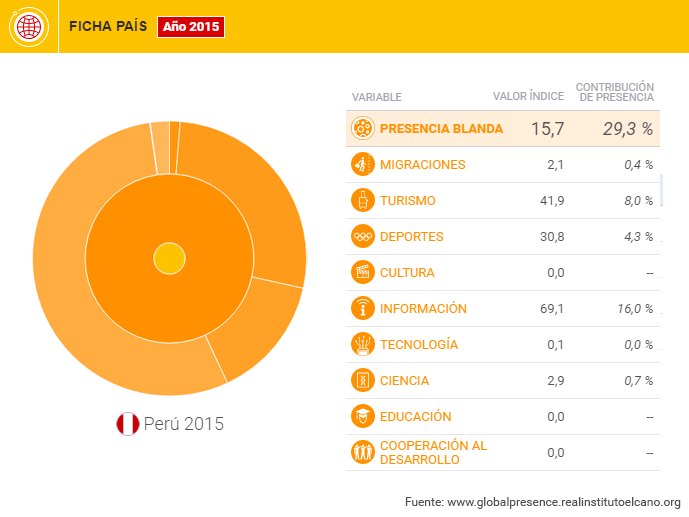 Presencia blanda de Perú. Fuente: Real Instituto Elcano, Índice Elcano de Presencia Global.