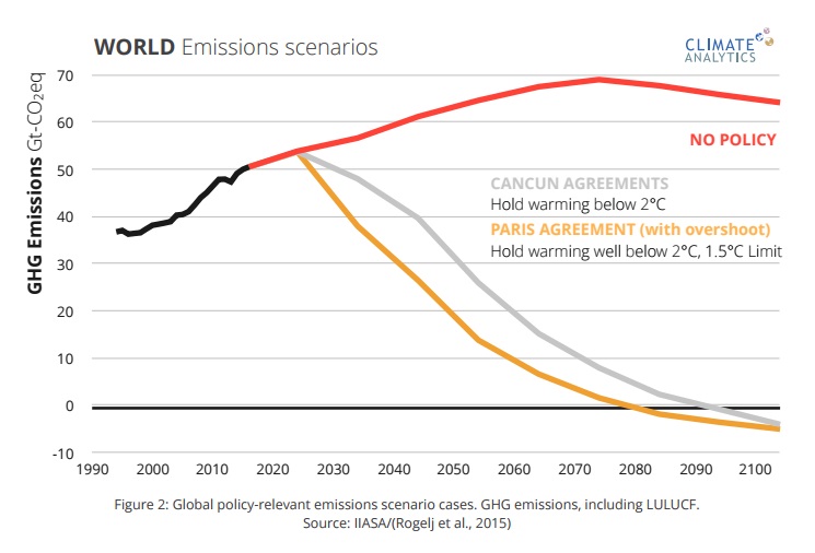 En el acuerdo logrado en diciembre de 2015 en la capital francesa se incluyó el compromiso de 195 potencias de alcanzar la neutralidad de emisiones de gases de efecto invernadero entre 2050 y 2100 para contener el incremento de la temperatura de la Tierra y limitar el calentamiento global por debajo de los 2ºC. Fue un proceso de difíciles negociaciones ya que pretendía lograr un consenso entre países con intereses muy distintos. El acuerdo finalmente se consiguió mediante un pacto de “responsabilidades comunes pero diferenciadas”. No se contemplaría la imposición de sanciones, pero sí un mecanismo de seguimiento. Pese a que el acuerdo no es jurídicamente vinculante, se consideró un éxito político.