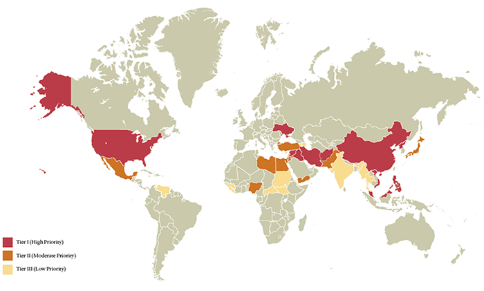 Mapa de prioridades para EE UU en 2015 del Center for Preventive Action (CFR).