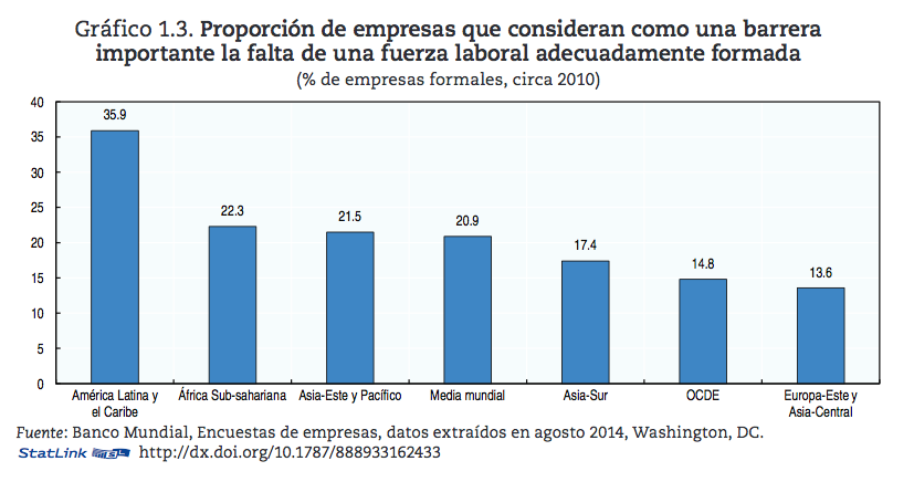 El desplazamiento de la riqueza mundial hacia el mundo emergente ha aumentado la demanda de competencias más altas. La región tiene una demanda profesional cada vez más exigente, pero un 35,9% de las empresas de América Latina tiene dificultades para encontrar trabajadores con las competencias profesionalesque necesitan, cuando la media mundial es del 20,9% y la de la OCDE, de 14,8%.