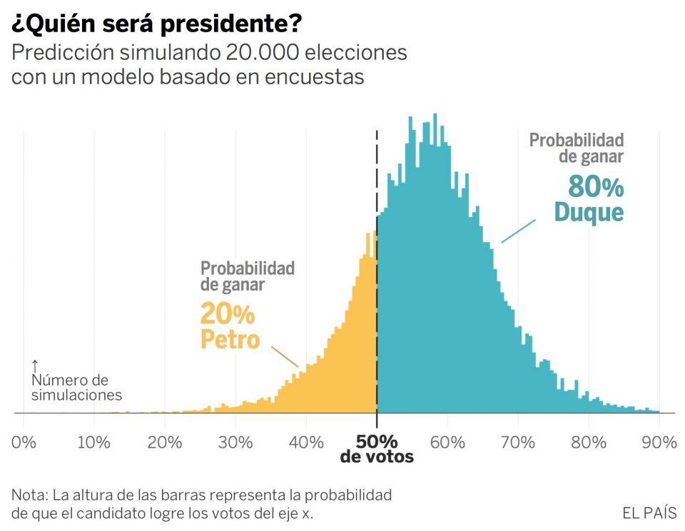 El resultado de las elecciones presidenciales del 27 de mayo en Colombia (Iván Duque, 39%; Gustavo Petro, 25 %; Sergio Fajardo, 23%; Germán Vargas Lleras, 7%, y Humberto De La Calle, 3%) dejaron abierta la posibilidad de victoria de los dos candidatos que alcanzaron la segunda vuelta. La derecha de Duque y Vargas Lleras tiene un caudal de votos ya ganado (46%) que fácilmente puede llevar al primero al Palacio de Nariño, sino fuera porque los restantes han recibido un voto que, con los debidos matices entre cada uno de ellos, agrupan la lucha contra la corrupción como mal estructural más notorio de las maquinarias políticas colombianas tradicionales. Un análisis desde ese otro punto de vista simplificaría la victoria de Petro en cuanto representante de ese grupo alternativo. Nada más lejos, sin embargo, de la realidad.