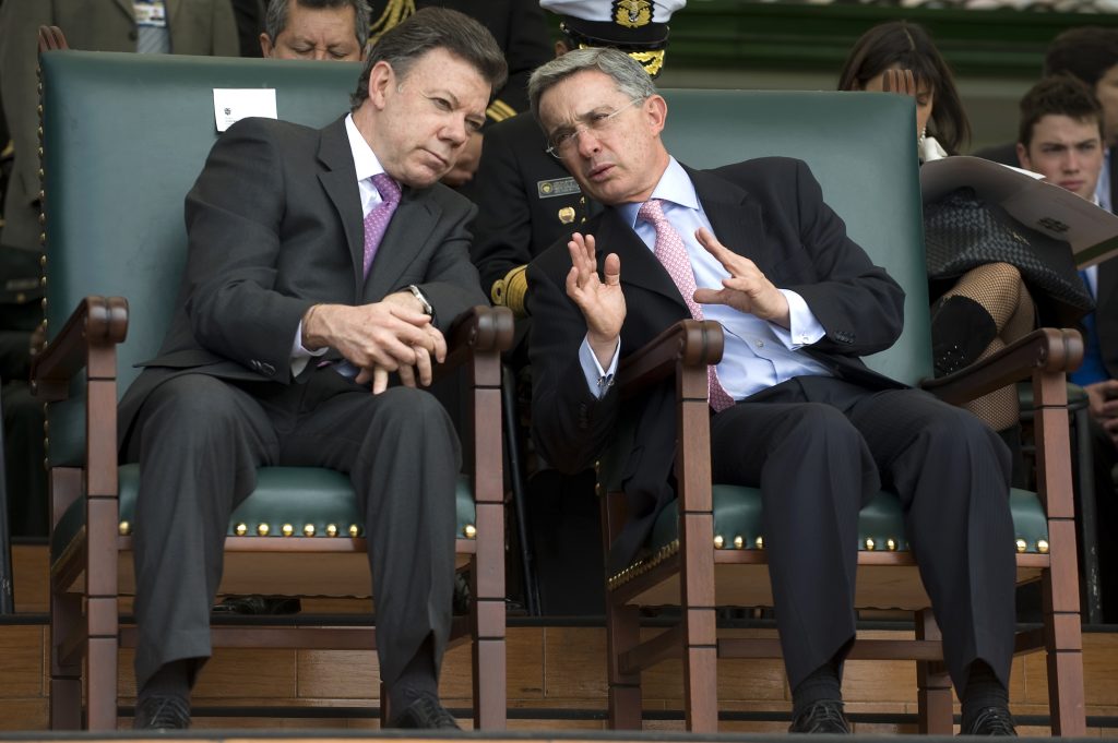 El pulso entre los dos líderes políticos más poderosos de Colombia, el presidente Santos versus el expresidente Uribe, enmarca el proceso electoral de 2014 y tiene en la paz la diferencia más marcada. El mapa de los resultados de las urnas en la primera vuelta refleja una nación literalmente partida en dos: las Costas Caribe y Pacífica más el suroccidente y el Amazonas con Santos; mientras el centro andino, los llanos orientales y Antioquia votaron mayoritariamente por Zuluaga. La hegemonía uribista que caracterizó la política colombiana desde 2010 terminó este año con la fractura entre seguidores de Uribe y de Santos, quien atrajo el apoyo del partido Liberal.