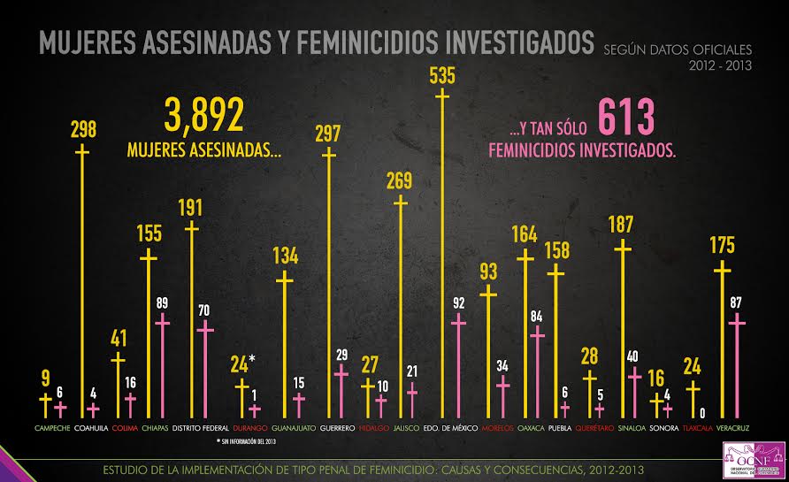 En la república mexicana no es fácil llevar la cuenta de los feminicidios, ante la ausencia de una definición estandarizada de este delito. Si bien a excepción de Chihuahua todos los demás Estados mexicanos han tipificado el delito de feminicidio, las definiciones recogidas en sus códigos penales varían. Los datos del Instituto Nacional de Mujeres muestran que algunas entidades federativas no han registrado feminicidios durante diversos periodos, a pesar de que tanto prensa como organizaciones de la sociedad civil han reportado casos. La falta de registros precisos impide analizar la dimensión de la situación.