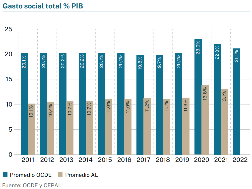 Pese a que las medidas de emergencia tomadas por los gobiernos mostraron los posibles efectos de una protección social reforzada, las transformaciones necesarias para una sociedad más igualitaria requerirían de una reflexión en profundidad sobre el nuevo sistema para procurar equilibrar su sostenibilidad, con adecuados niveles de cobertura y de suficiencia de prestaciones. Las transferencias monetarias no contributivas permanentes, la reducción de la informalidad laboral, mejoras en infraestructuras, acceso a vivienda, a salud, a educación y a servicios básicos conllevarían, ineludiblemente, un aumento del gasto público. Según la Organización para la Cooperación y el Desarrollo Económicos (OCDE), el gasto público en protección social en América Latina y Caribe es del 11,4% del PIB, frente al 19,7% en los países OCDE.