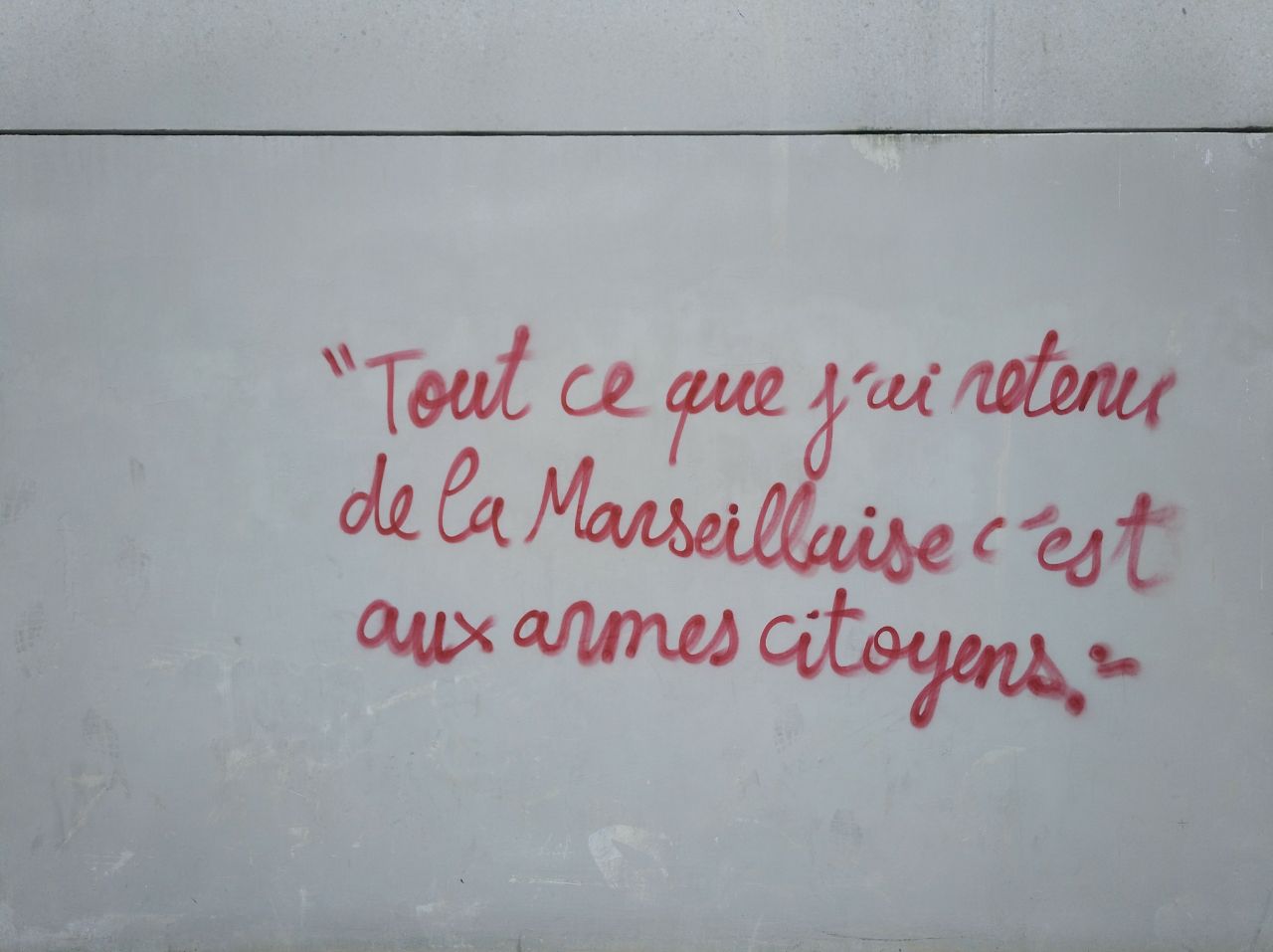 Todo lo que he retenido de La Marsellesa es «a las armas, ciudadanos». Pintada de los chalecos amarillos en Nantes. Fotografía de David Perejil.