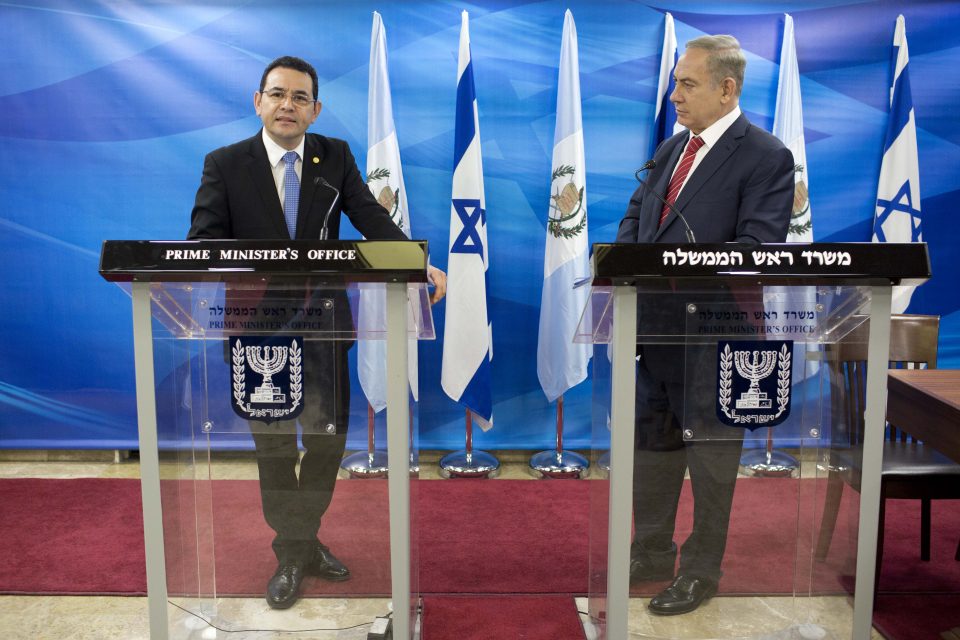 Ya en 1994, Guatemala anunció el traslado de su embajada en Israel a Jerusalén y se retractó poco después, a la vista de las consecuencias económicas que implicaba la decisión. Los países árabes amenazaron con cortar las relaciones comerciales con Guatemala y se calculó que ello afectaría por lo menos a 350.000 familias guatemaltecas, constituidas en pequeñas productoras-exportadoras de cardamomo. La economía guatemalteca no tenía margen de maniobra.
