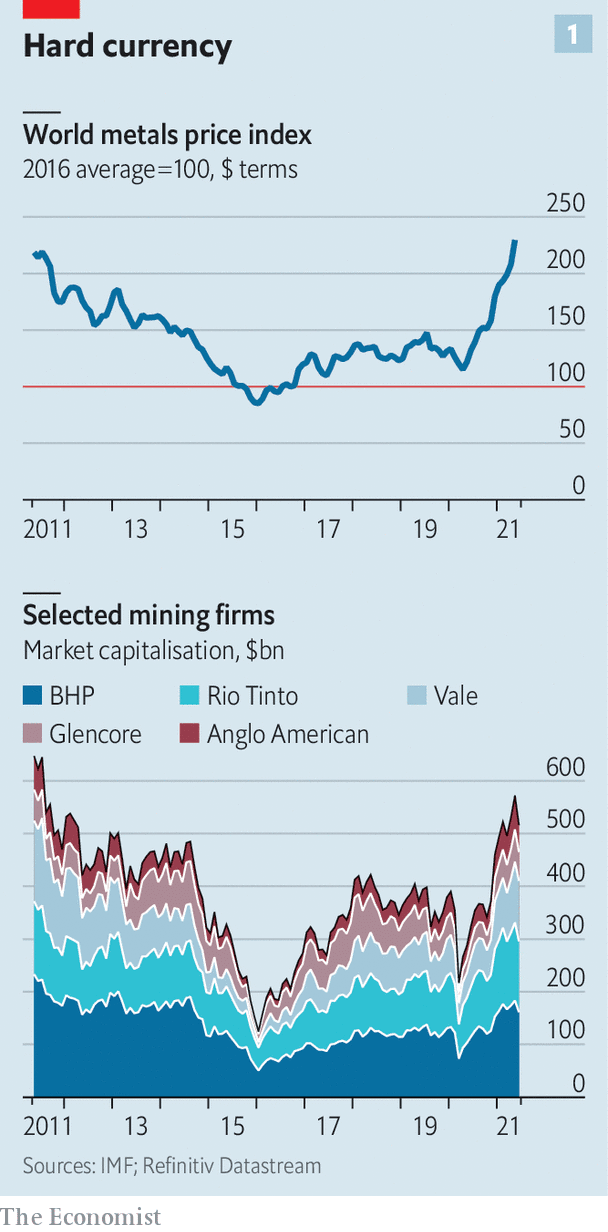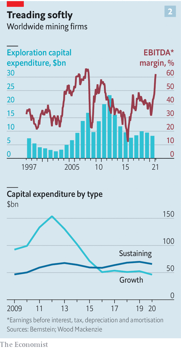 Las inversiones de Anglo American, Glencore, BHP, Rio Tinto y Vale han aumentado desde 2015, pero aun están un 50% por debajo de 2012. El mineral de hierro y los combustibles fósiles representan la mitad de sus ingresos y el 75% de sus beneficios operativos brutos.