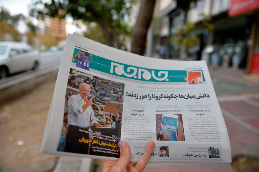 Un ciudadano lee las noticias sobre las elecciones estadounidenses en una calle de Teherán (Irán), el 9 noviembre de 2020. GETTY