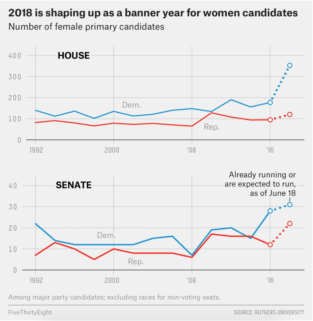 Candidatas demócratas y republicanas en primarias legislativas. Fuente: FiveThitryEight.