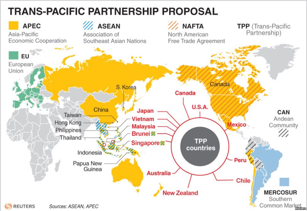 Países miembros del TPP. Fuente: Reuters.