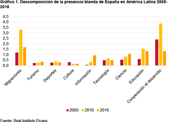 No cabe duda de que la presencia de España en América Latina ha estado protagonizada por los procesos de internacionalización de diferentes empresas españolas en la región. Pero, al mismo tiempo, dados los vínculos históricos y culturales, cabría esperar cierta importancia de la dimensión blanda, que constituye precisamente uno de los rasgos determinantes de la proyección de España en el mundo. Esto, sin embargo, no se produce.
