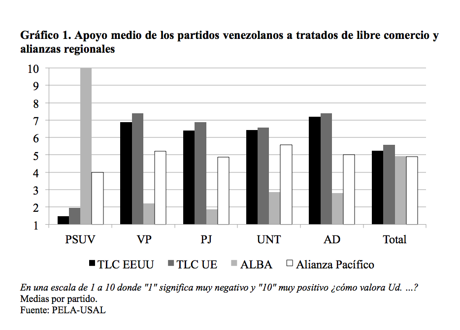 Como en cualquier otro país de América Latina, el cambio de correlación de fuerzas implica un reposicionamiento en la esfera internacional. A pesar de que somos conocedores de la opinión que tienen una gran mayoría de gobiernos y partidos políticos sobre los diferentes actores políticos venezolanos, no sabemos cuáles son las opiniones de la élite política venezolana sobre la esfera internacional, en especial en lo concerniente a alianzas y tratados comerciales. El análisis de las posiciones de la élite legislativa sobre las relaciones internacionales se hace a través de la base de datos de Élites Latinoamericanas de la Universidad de Salamanca (PELA-USAL), que incluye entrevistas a los diputados venezolanos en 2016.