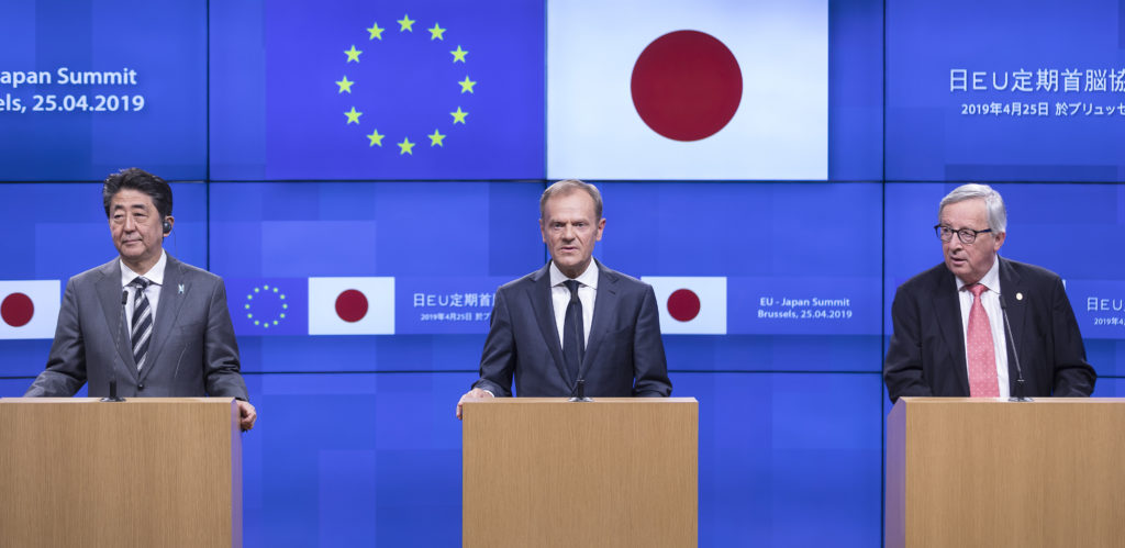 Tampoco es la primera vez que Japón y la UE colaboran. En estos últimos años, dos hechos han generado un clima de más cercanía entre ambas potencias. El primero fue la firma y la puesta en marcha de un Tratado de Libre Comercio entre la Unión Europea y Japón. El acuerdo beneficiaba a los sectores exportadores de ambas partes, pero sobre todo establecía un clima de cercanía y cooperación. El segundo hecho que ha acercado a Bruselas y a Tokio es la retirada de Donald Trump del acuerdo de libre comercio transpacífico, TPP por sus siglas en inglés. El TPP buscaba reforzar las conexiones y apoyos entre los países vecinos –y recelosos– de China con EEUU. Al romperse este pacto, Japón ha salido en busca de otros apoyos, como el de la UE, que además defiende valores parecidos en el ámbito de una economía internacional abierta.