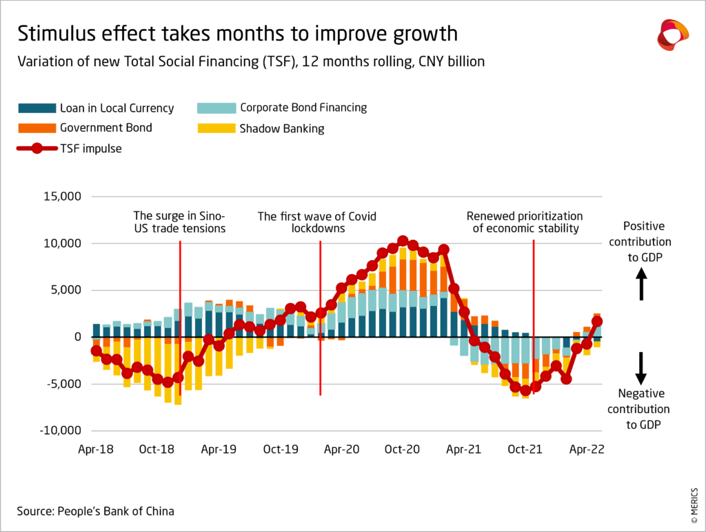 Pero la presión que supone la bajada del crecimiento revivió una vez más el trilema tradicional de Pekín: tener que elegir entre los objetivos de empleo estable, mejor asignación de recursos (es decir, reformas estructurales) y deuda pública estable. Dado que el empleo estable es la prioridad indiscutiblemente más importante a medida que se avecina el 20º Congreso del PCCh, cualquier ambición de más reformas estructurales y pasos hacia la sostenibilidad de la deuda se ha dejado de lado por el momento. Como resultado, Pekín nuevamente está buscando un rápido repunte en el crecimiento económico.