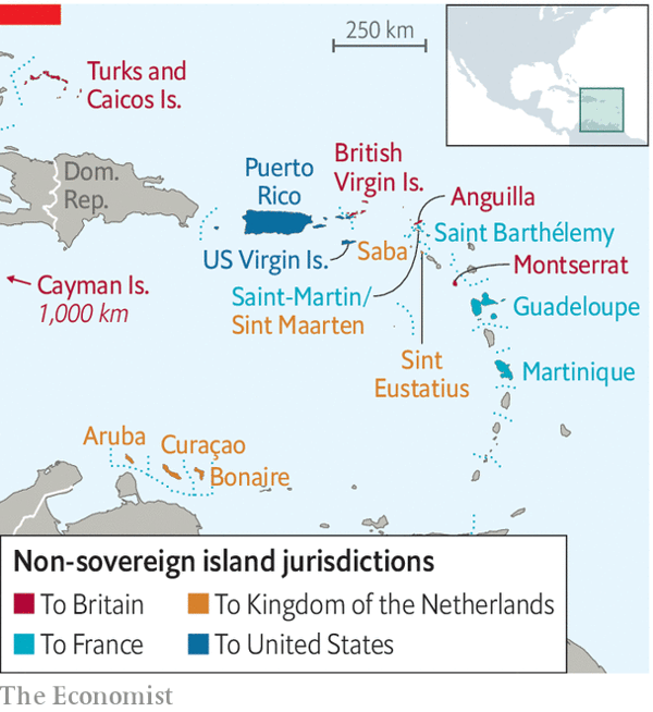 En la mayor parte de ellas, la solidaridad no parece muy necesaria. Los 17 territorios insulares “no soberanos” caribeños son por lo general más prósperos que sus vecinas repúblicas. En términos per cápita, siete de los 10 más ricos son no soberanos cuyos ciudadanos gozan de autogobierno, de las ventajas de la influencia de sus antiguas metrópolis y pasaportes y la posibilidad de poder vivir en Estados Unidos o la Unión Europea. En paridad de poder adquisitivo, el PIB per cápita de Bahamas es similar al de España o Italia. En el índice de desarrollo humano de la ONU, Barbados, que en noviembre se convirtió en república –el primer país de la Commonwealth en hacerlo desde Mauricio en 1992– está muy por delante de sus vecinos suramericanos.