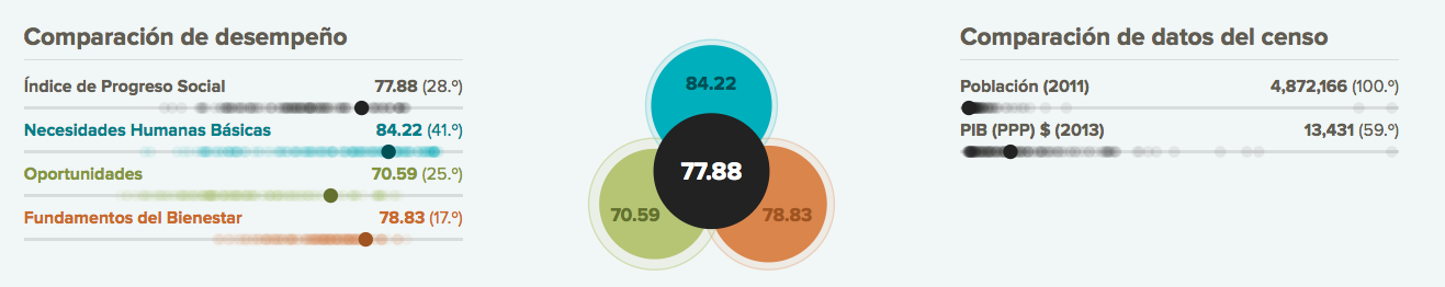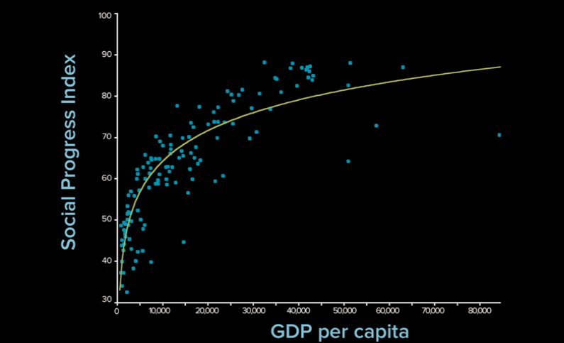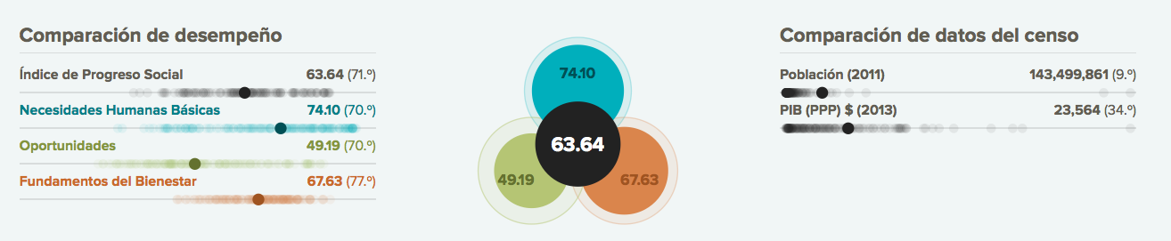 Véase el caso de Rusia: con una renta per cápita de 23.564 dólares (34º), ocupa el puesto 71 en eñ índice de progreso social. El país funciona relavivamente bien en acceso a la educación superior, por ejemplo, pero su desempeño en otras áreas como derechos personales, tolerancia e inclusión, salud y bienestar o seguridad personal es malo. En cambio, Costa Rica, con un PIB per cápita casi la mitad que el ruso, 13.431 dólares (59º), ocupa un puesto mucho más elevado elevado en el índice (28º) gracias, entre otros aspectos, a su buen desempeño en derechos personales, vivienda o acceso a la información y las comunicaciones, aunque puntúe mal en acceso a la educación superior.